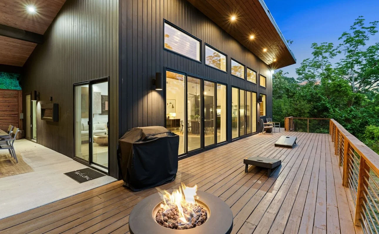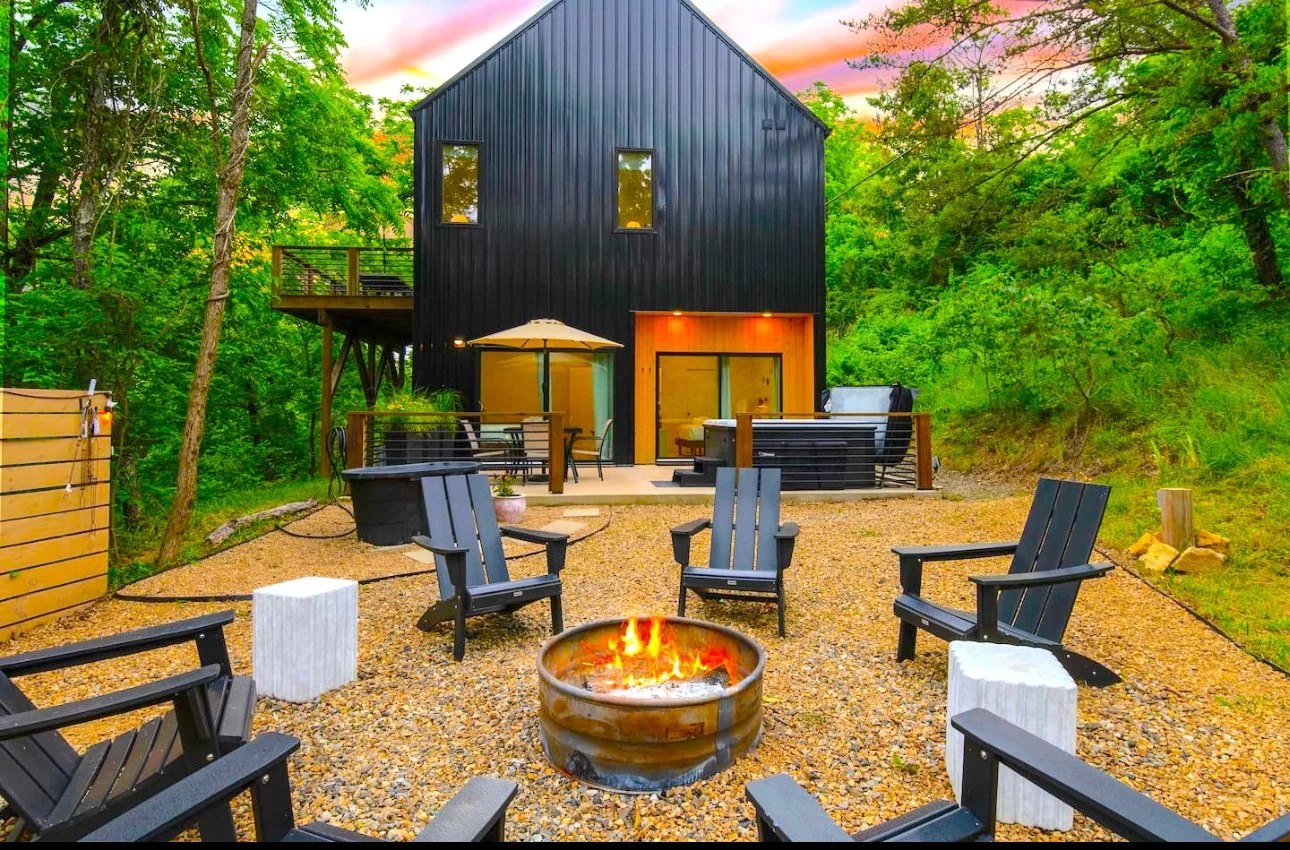 A personal favorite (we’ve decorated here over 15 times!), the Glass House is all about modern vibes with nature as the backdrop. With 3 bedrooms, 2 bathrooms, and space for 5–8 guests, it’s cozy but chic. Just 15 minutes from downtown Asheville, it’s early entry friendly (huge perk for setting up décor before everyone arrives).